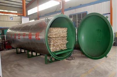 真空狀態(tài),主要利用真空狀態(tài)下水的沸點(diǎn)較低,蒸發(fā)速度加快,木材表面的含水率梯度增大,木材在干燥過(guò)程中,一方面表面水分向周?chē)諝庵姓舭l(fā),另一方面內(nèi)部的水分不斷地向表面移動(dòng),所以在較低的溫度下加快了干燥速度,這樣就能保證木材的干燥質(zhì)量。而真空狀態(tài)是一種負(fù)壓狀態(tài),有一定吸水作用,與高頻的壓力梯度正好相似,也加速了木材芯部水分排出,此外,在低壓條件下,干燥介質(zhì)中的氧氣,因熱作用與氧化作用引起的物料變色少,基本上可以保持名貴木材的天然色澤。